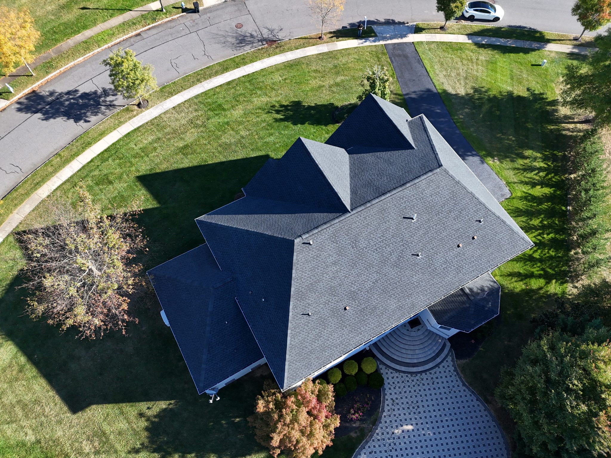 Our team approached this project with the level of care and expertise befitting such a significant home. The removal process was conducted systematically to protect the property and landscaping. Our installers worked methodically across the extensive roof surface, maintaining consistent quality standards on every section. The complex angles and multiple planes were navigated with precision, ensuring proper shingle alignment and secure fastening throughout. The completed installation transformed the home’s appearance—the rich charcoal roof creates a dramatic contrast and sophisticated elegance that enhances the property’s commanding presence. Beyond aesthetics, the new roofing system delivers comprehensive protection engineered to last for decades. The homeowners now enjoy the confidence that comes with a professionally installed, premium roofing system that safeguards their valuable investment while maintaining the home’s distinguished character.